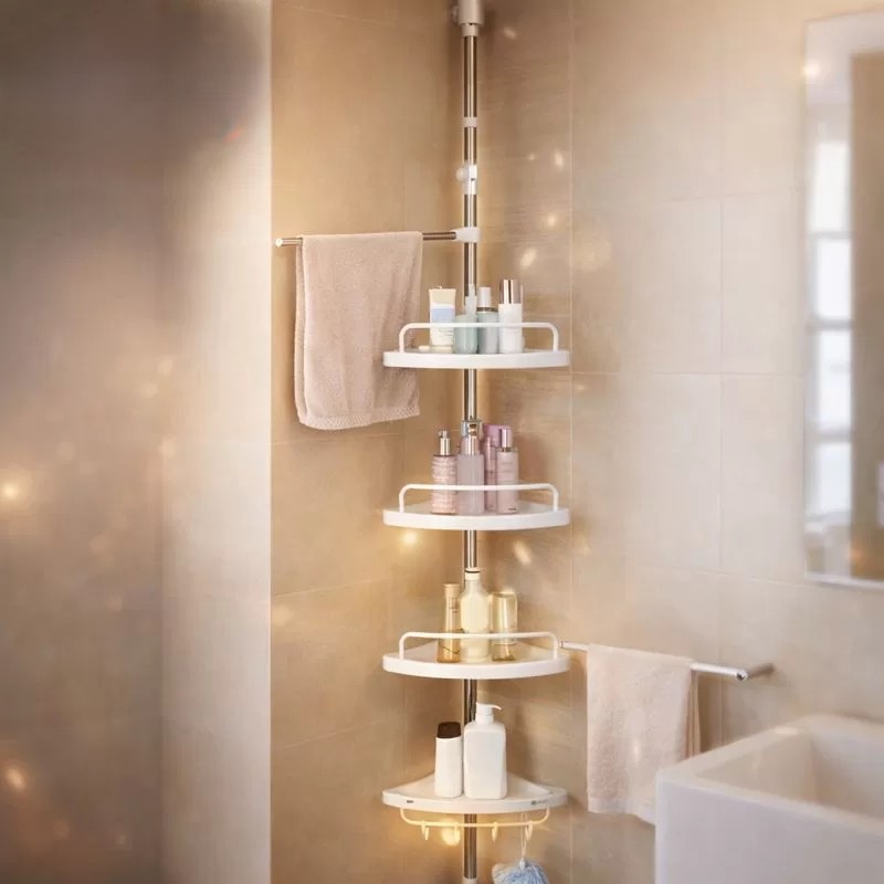 Tas ir teleskopisks stūra statīvs–organizators dušai un vannas istabai. Tas glīti novietojas stūrī un piešķir papildu uzglabāšanas vietu, “neapēdot” telpu. Piemērots higiēnas līdzekļiem, aksesuāriem un sadzīves sīkumiem.
